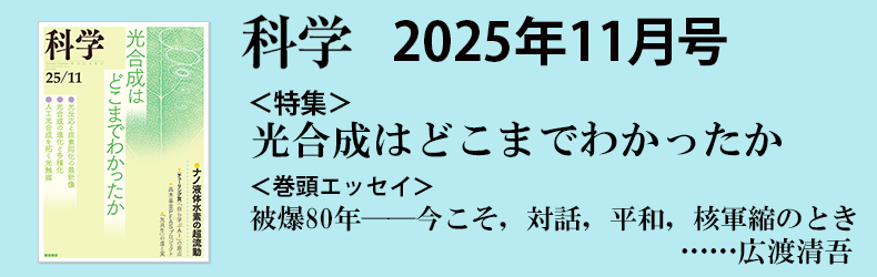 『科学』2025年11月号 特集「光合成はどこまでわかったか」|巻頭エッセイ『被爆80年──今こそ,対話,平和,核軍縮のとき』広渡清吾