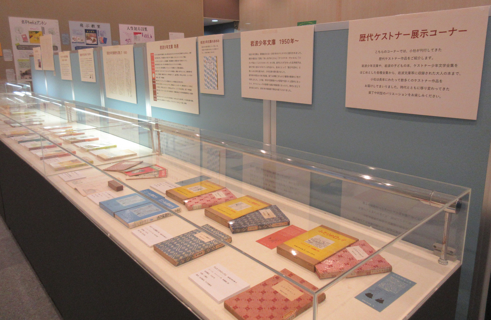 会場では、ケストナー作品の岩波書店歴代刊行書籍や、作品を紹介するパネルを展示いたしました。