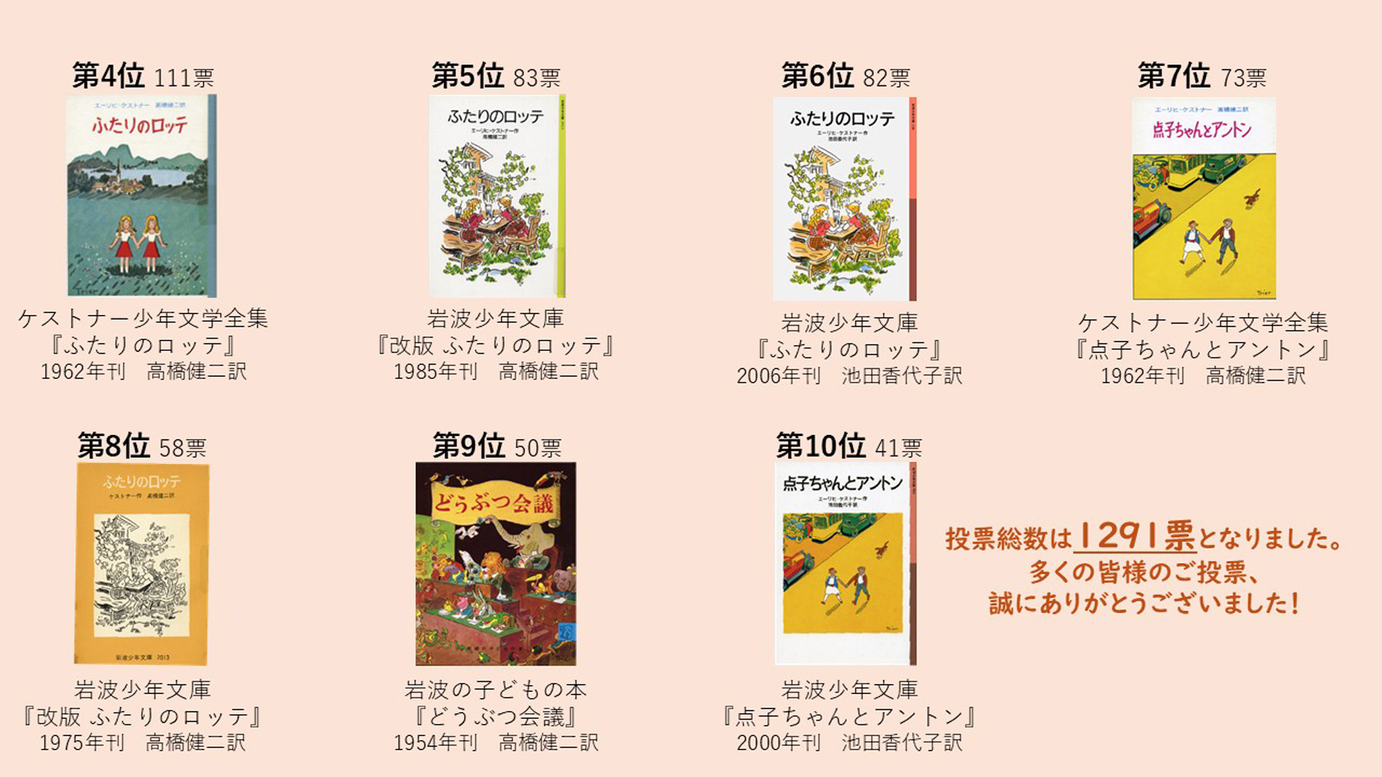 ●会場で行っておりました、「初めて出会ったケストナーの本」投票結果を発表します!